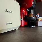 En balkon, kaffe- og tefaciliteter, en privat værdiboks samt separat toilet og en bruser findes på værelserne.